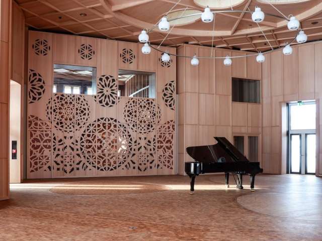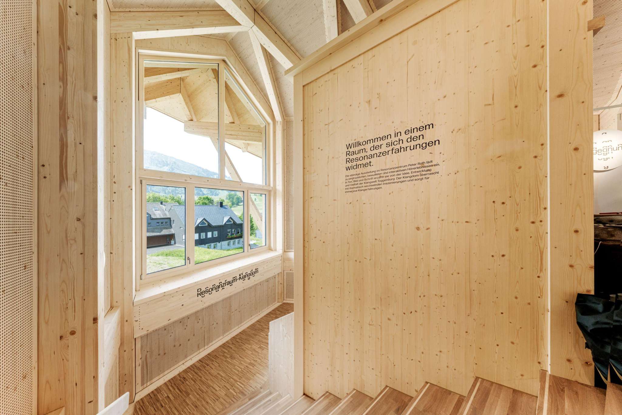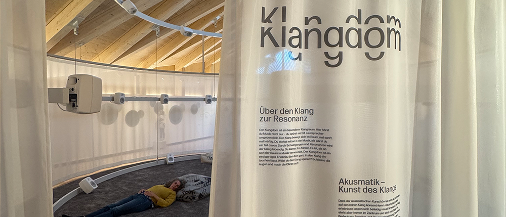 Anschliessend betreten wir das Klanghaus, ein begehbares Instrument, dessen architektonische Gestaltung und strukturelle Details – inklusive individuell einstellbarer Klanginstallationen in den Doppelwänden – Raum, Proportion und Material in ein einzigartiges Erlebnis von Volumen und Atmosphäre verwandeln.