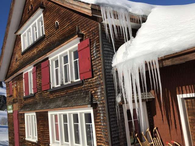 Trotz des von aussen rustikalen Aussehens, erwartet Sie drinnen eine moderne Küche mit elektrischem Herd und Backofen sowie zwei Kühlschränken und Kaffeemaschinen (Kapseln & Filter). Dabei büssen Sie jedoch nichts des Berghütten-Flairs ein, denn die Holzstruktur und der mit Holz befeuerte Kachelofen werden Sie warm und entspannt halten. Für kalte Nächte sind alle Schlafräume mit elektrischen Heizungen ausgestattet.