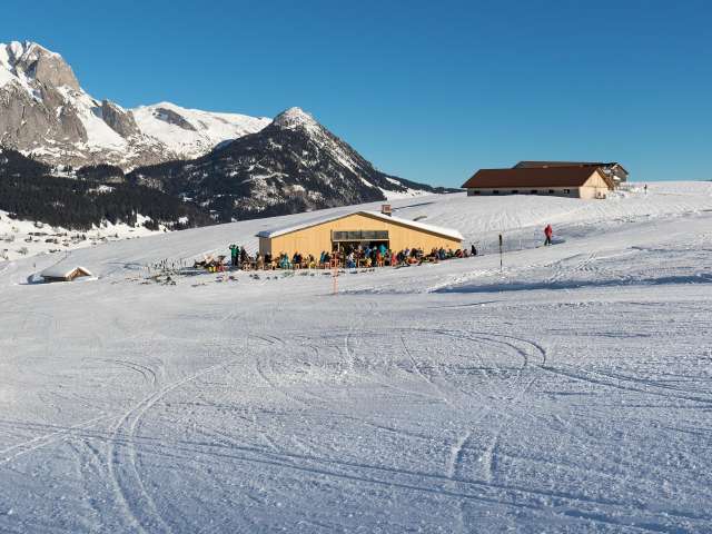 Mit seiner grosszügigen Sonnenterrasse lädt er zum Verweilen ein und bietet den Gästen Platz, Toggenburger Spezialitäten direkt am Pistenrand zu geniessen. In der gemütlichen Gaststube bestehen weitere Plätze für das Entspannen und Geniessen an kalten und stürmischen Wintertagen zur Verfügung.