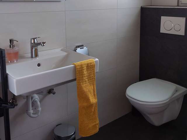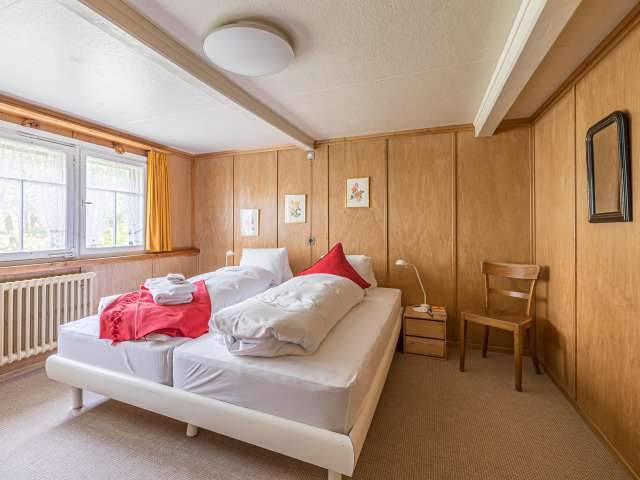 Das Haus liegt mitten im Grünen, umgeben von einer schönen Gartenanlage und sanften Hügeln, ca. 300m vom Dorf Bächli entfernt.