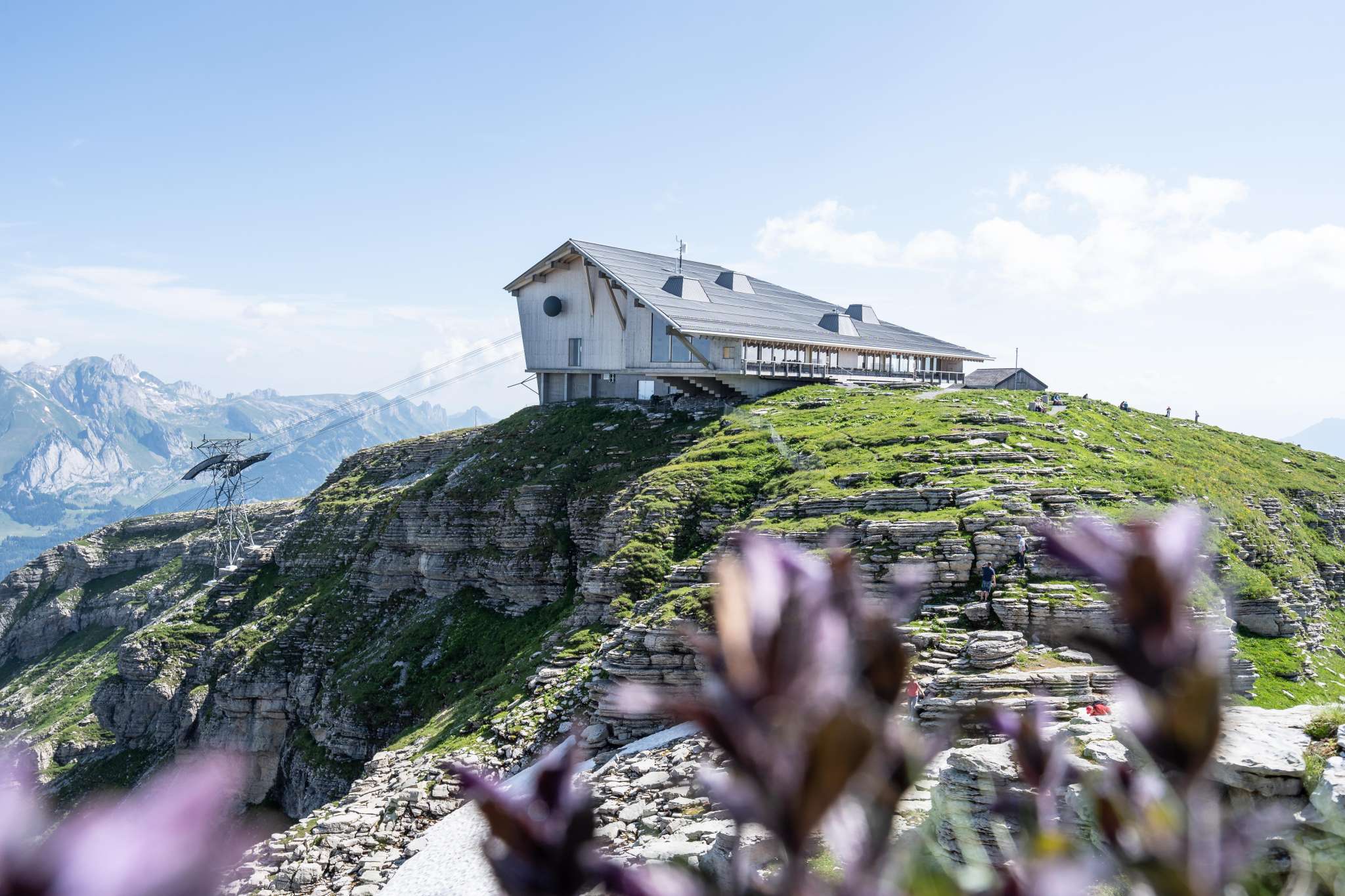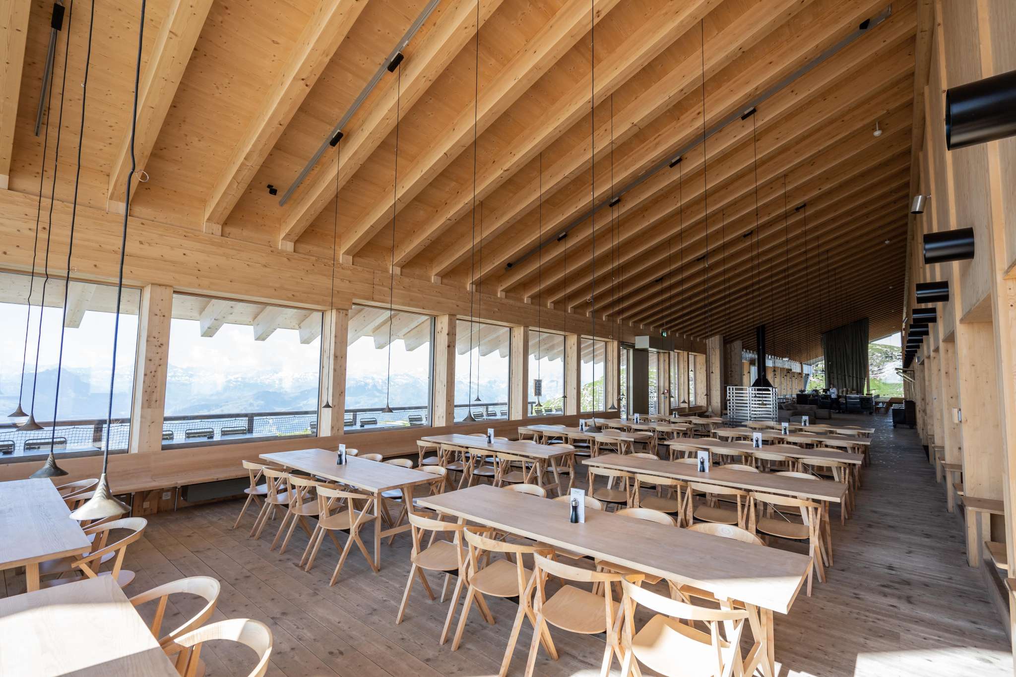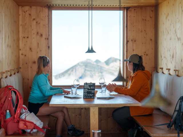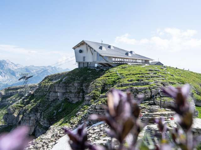 Ein Ort der Ruhe und des Genusses Hoch oben auf dem Chäserrugg, dem östlichsten der sieben Churfirsten, erwartet Sie das Gipfelrestaurant Chäserrugg. Auf 2'262 Metern über Meer bietet es nicht nur kulinarische Höhepunkte, sondern auch einen atemberaubenden Panoramablick über sechs Länder. Ob bei strahlendem Sonnenschein oder mystischem Nebel – hier erleben Sie eindrückliche Momente inmitten der alpinen Landschaft. Architektur im Einklang mit der Natur Das von Herzog & de Meuron entworfene Gipfelgebäude fügt sich harmonisch in die Bergwelt ein. Verwendet wurden unbehandelte Hölzer aus der Schweiz – Fichte und Esche – die der Architektur eine schlichte Eleganz und regionale Authentizität verleihen. Die grosszügigen Fensterfronten eröffnen spektakuläre Ausblicke, während die durchdachte Raumgestaltung sowohl Rückzugsorte als auch gesellige Plätze schafft. Rahmenprogramme für unvergessliche Erlebnisse Die Hochebene Rosenboden lädt zu gemütlichen Wanderungen ein. Der Panoramarundweg bietet faszinierende Ausblicke auf über 500 Berggipfel und den Walensee. Für Interessierte werden Architekturführungen angeboten, die spannende Einblicke in die Entstehung und Gestaltung des Gipfelgebäudes geben. Anreise – bequem und barrierefrei Die Anreise zum Chäserrugg gestaltet sich komfortabel: Von Unterwasser gelangen Sie mit der Standseilbahn nach Iltios und von dort mit der Luftseilbahn direkt zum Gipfel. Beide Bahnen sind rollstuhlgängig, und auch das Gipfelgebäude.