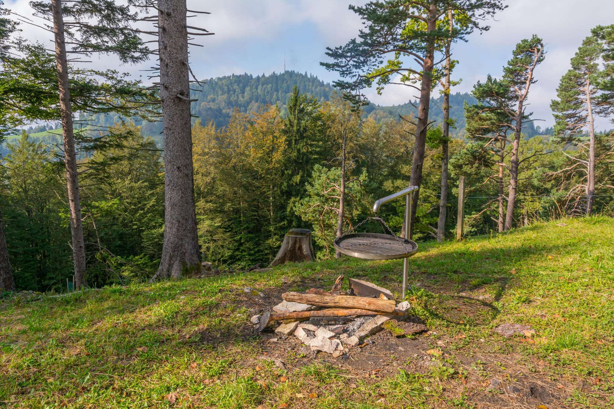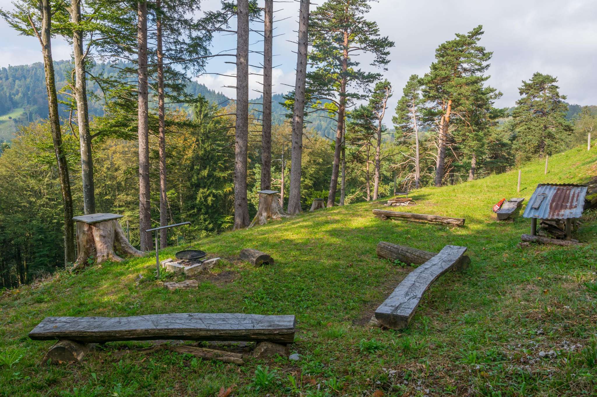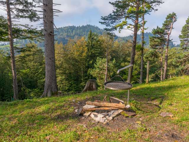Vom Grillplatz Alp Ergeten 1 aus hat man einen schönen Blick auf das Hörnli mit seiner Hohen Antenne auf dem Gipfel. Er ist teilweise von einem Wald umgeben. Insgesamt verfügt der Grillplatz über zwei Feuerstellen. Beide sind mit ein paar losen Steinen eingefasst und verfügen über einen runden Rost, der an einer Kette hängt. Mittles der Kette können die Roste problemlos in der Höhe verstellt werden. Ebenso kann man sie zur Seite schwenken. Unter einem Dach gibt es einen Holzvorrat. Bei beiden Feuerstellen, die rund 10 m auseinanderliegen, stehen zwei Bänkli. Kinderwagentauglich: nein, Holz: ja, Trinkwasser: nein, WC: nein, Kapazität: ca. 20