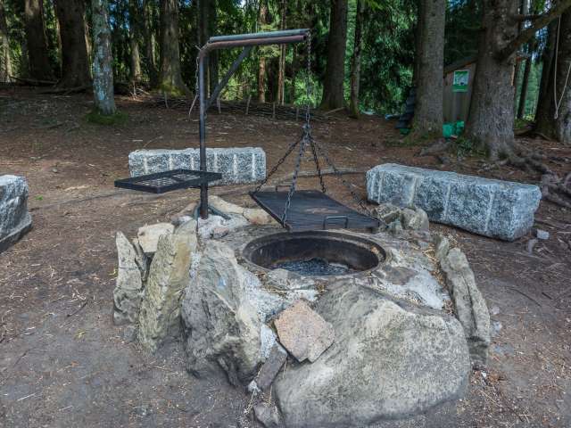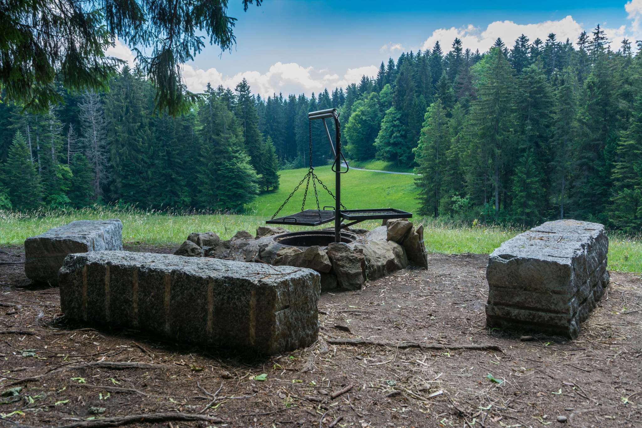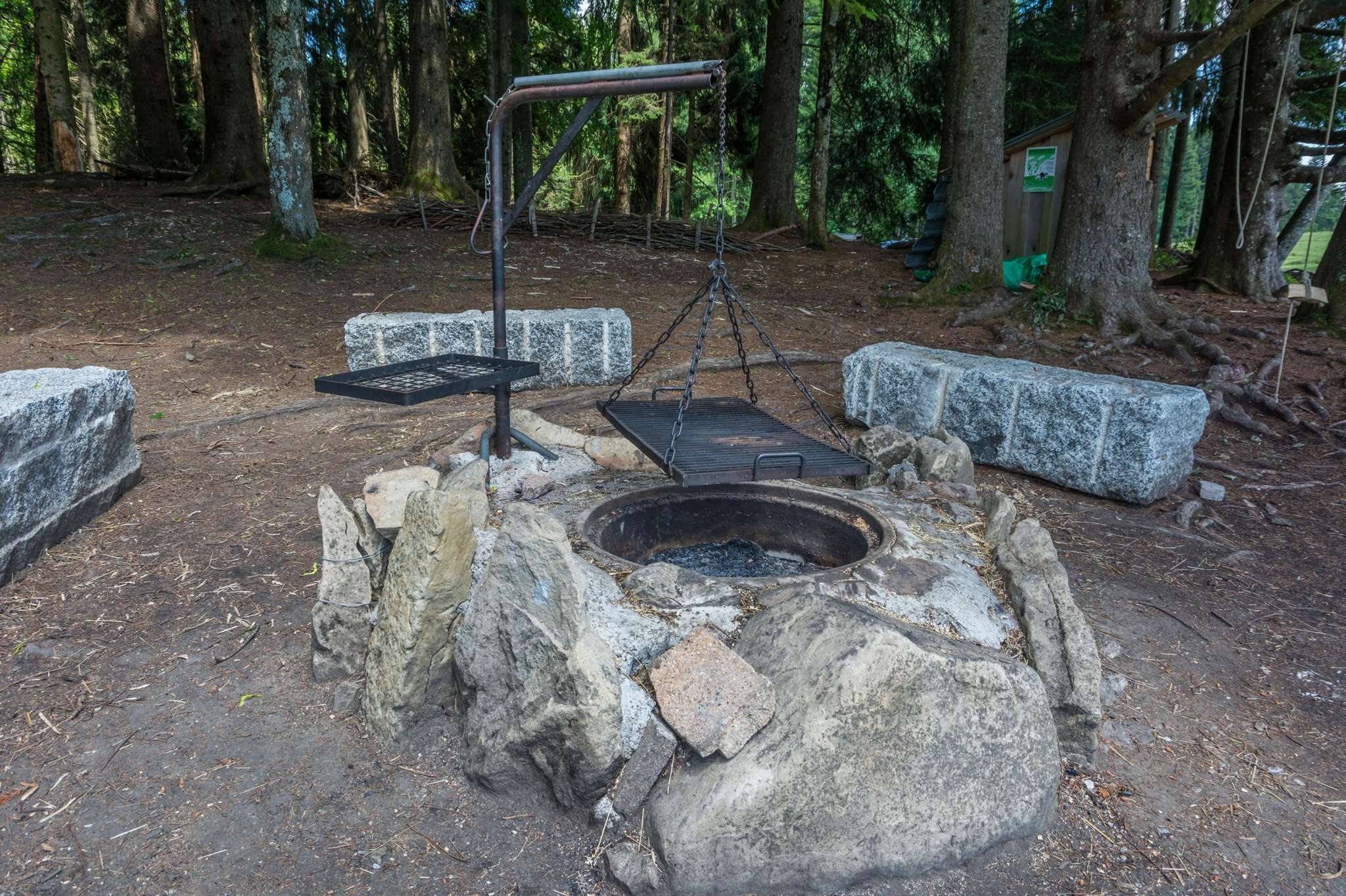 Mit dem Kinderwagen gut erreichbarer Grillplatz am Waldrand.