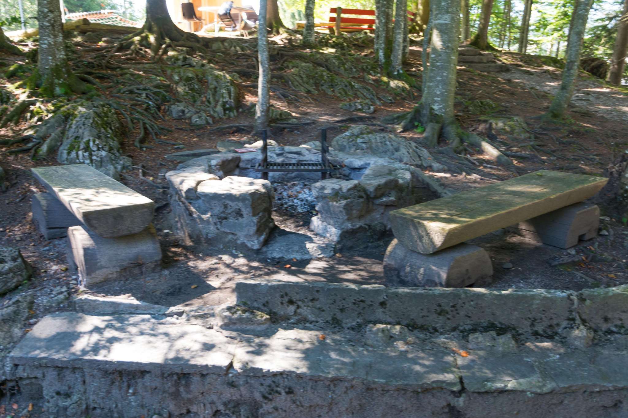 Direkt neben der Feuerstelle stehen zwei Bänklein, etwas weiter entfernt nochmals zwei. Holz steht zur Verfügung; Anzündhilfen sowie allfällige Reinigungshilfen für den Rost müssen selbst mitgebracht werden.