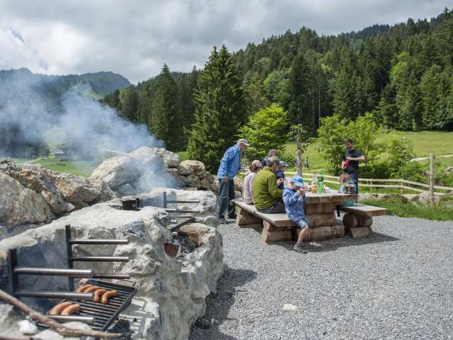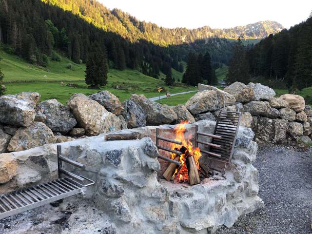 Im Ijental, oberhalb Nesslau, befindet sich diese gut eingerichtete Feuerstelle. Sie liegt am Klimaerlebnisweg Toggenburg.