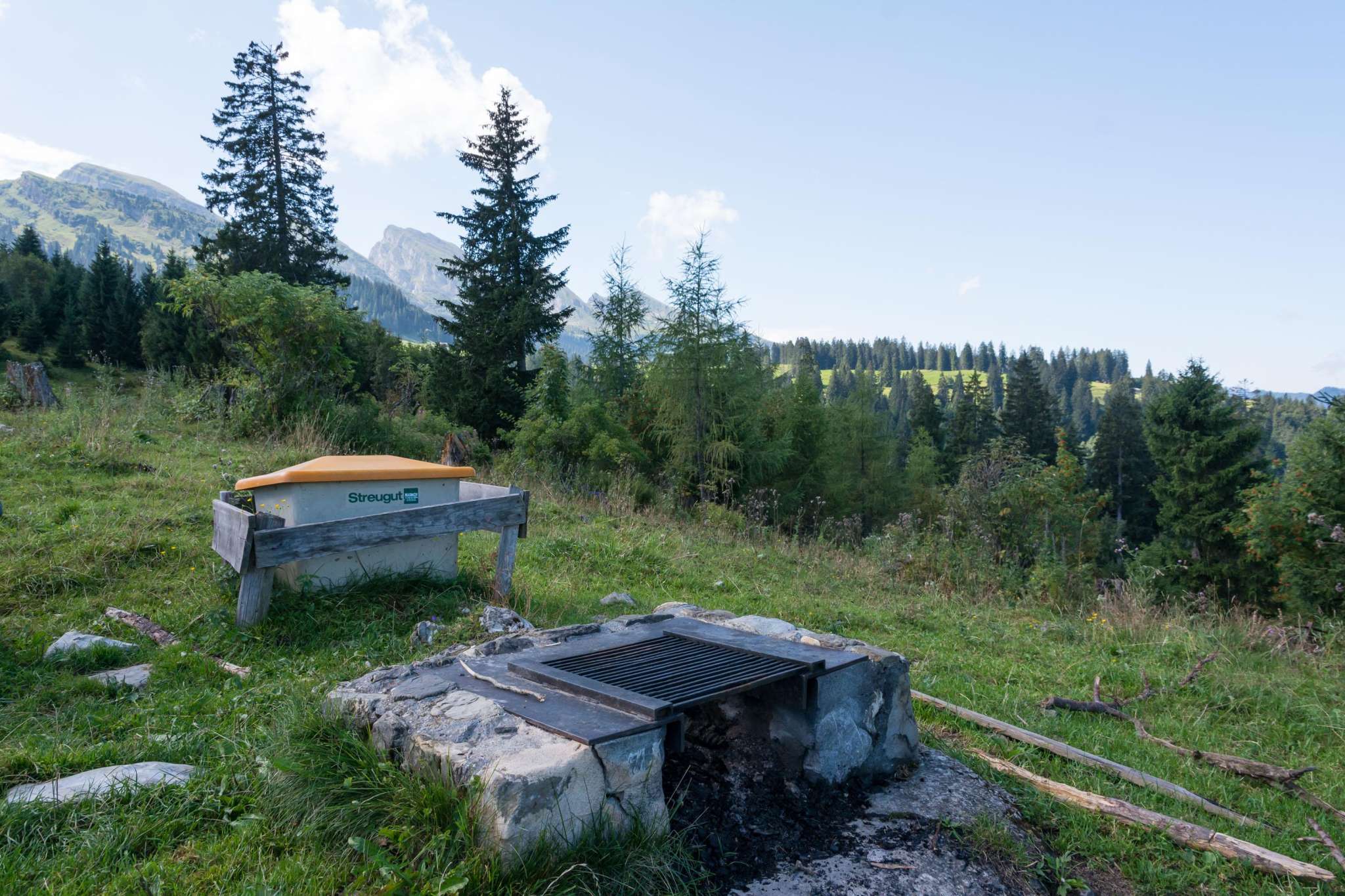 Vom Grillplatz Iltios aus hat man einen tollen Ausblick auf den Säntis und den Wildhuser Schofberg im Norden und die Churfirsten im Süden und Südwesten. Die Feurestelle ist gemauert und verfügt über einen quadratischen Rost, der aber in der Höhe nicht verstellbar ist. In einer Kiste nebendran steht ein Holz- und Zeitungspapiervorrat zur Verfügung. An der Bergstation Iltios gibt es einen Spielplatz. Kinderwagentauglich: ja, Holz: ja, Trinkwasser: nein, WC: ja, Kapazität: ca. 8
