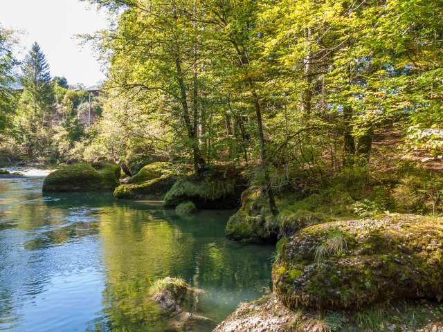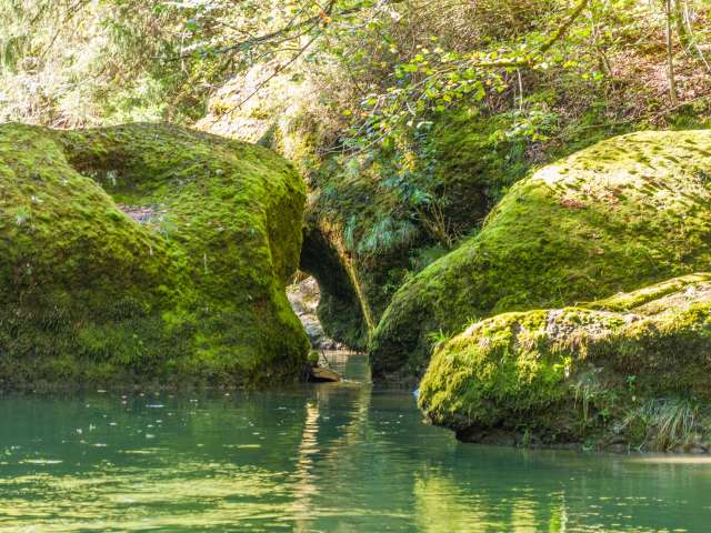 Der Grillplatz Naturbrücke liegt auf einer Landzunge, welche von der Thur umrahmt wird. Die Thur bildet oberhalb der Naturbrücke ein grosses und tiefes Becken, bevor sie über ein paar Felsstufen hinunterfliesst. Ein Teil des Wassers fliesst unter der Nagelfluh-Landzunge hindurch, welche somit eine Brücke bildet. Die Feuerstelle besteht aus einigen kreisförmig angeordneten Steinen und bietet sonst keinerlei Komfort. Einzig zwei Sitzbänke stehen zur Verfügung. Kapazität: ca. 8