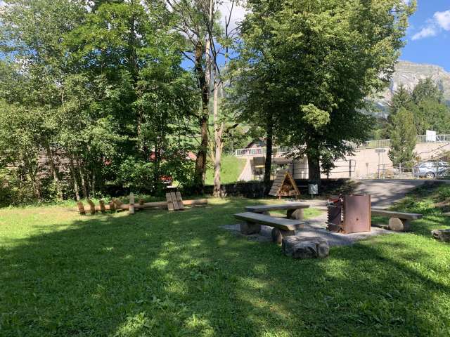 Gemütlicher Grillplatz mit kleinem, neu erbautem Spielplatz.