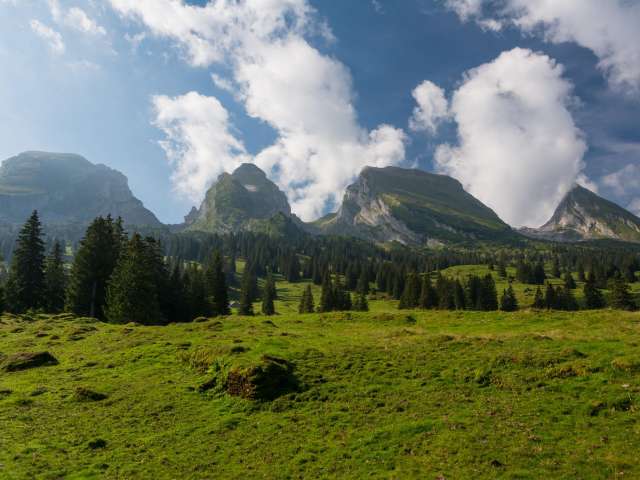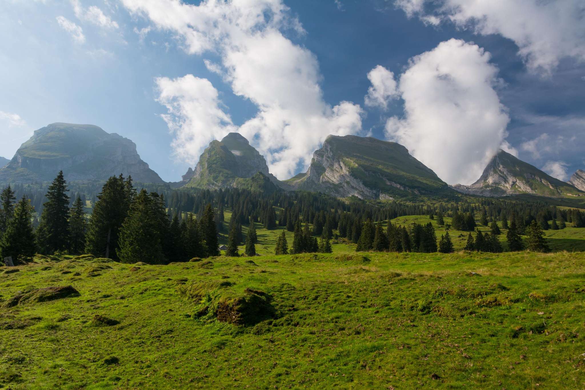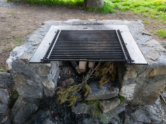 Schattiger Grillplatz am Toggenburger Sagenweg mit fantastischem Ausblick auf die Churfirsten.