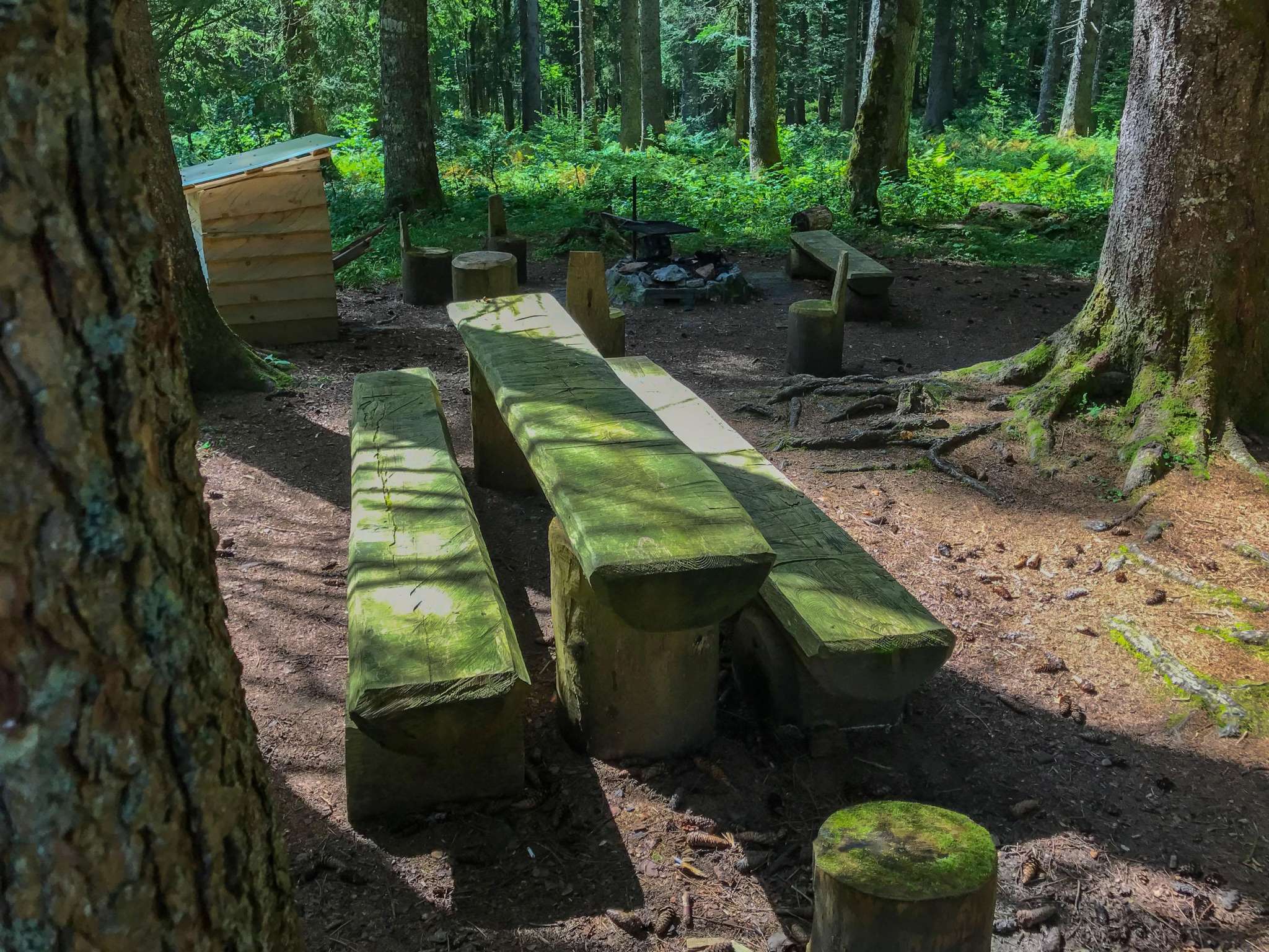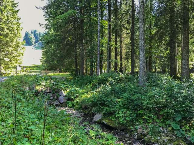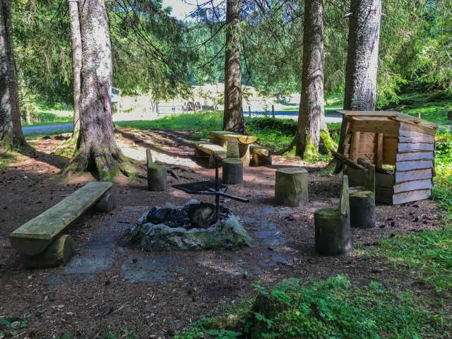 Der Grillplatz Stelzenboden liegt wunderbar ruhig im Bannwald im Schatten hoher Fichten. Zwischen den Bäumen kann man sehr gut eine Slackline aufspannen. Vom Grillplatz aus hat man einen sehr schönen Blick auf den Säntis. Die Feuerstelle ist rund gemauert und verfügt über einen rechteckigen Rost, der gut in der Höhe verstellt werden kann. Rund ums Feuer herum stehen eine Bank und einige Hocker, teilweise mit Lehne. Gleich daneben steht ein kleiner Holzunterstand, in welchem man Holz fürs Feuer und auch etwas Zeitungspapier vorfindet. Zum Essen steht ein Tisch mit zwei Bänken zur Verfügung. Kinderwagentauglich: ja, Holz: ja, Trinkwasser: nein, WC: nein, Kapazität: ca. 18