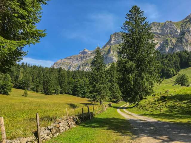 Kinderwagentauglicher Grillplatz mit Blick auf den Säntis.