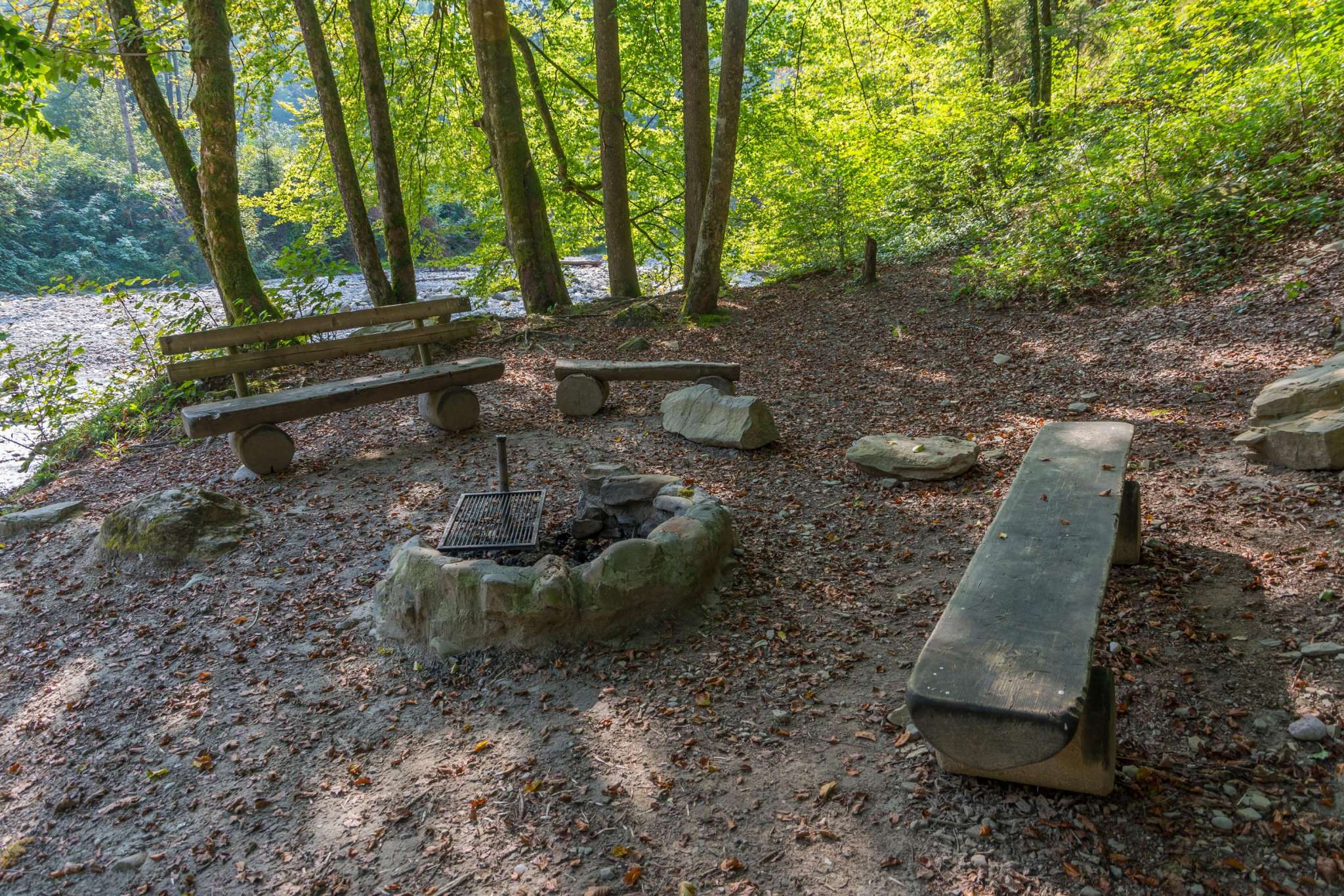 Drei Feuerstellen für mittlere Gruppen, wo der Tüfenbach in den Necker mündet.