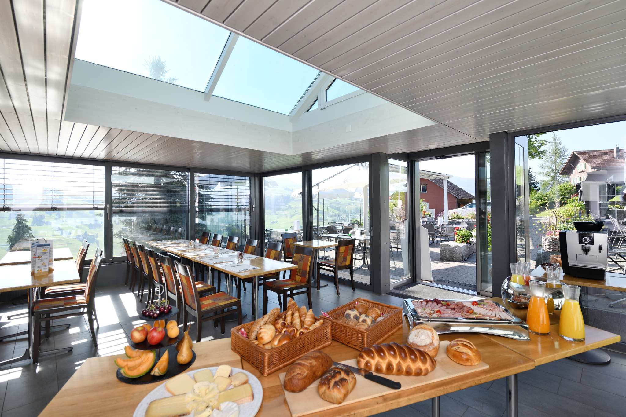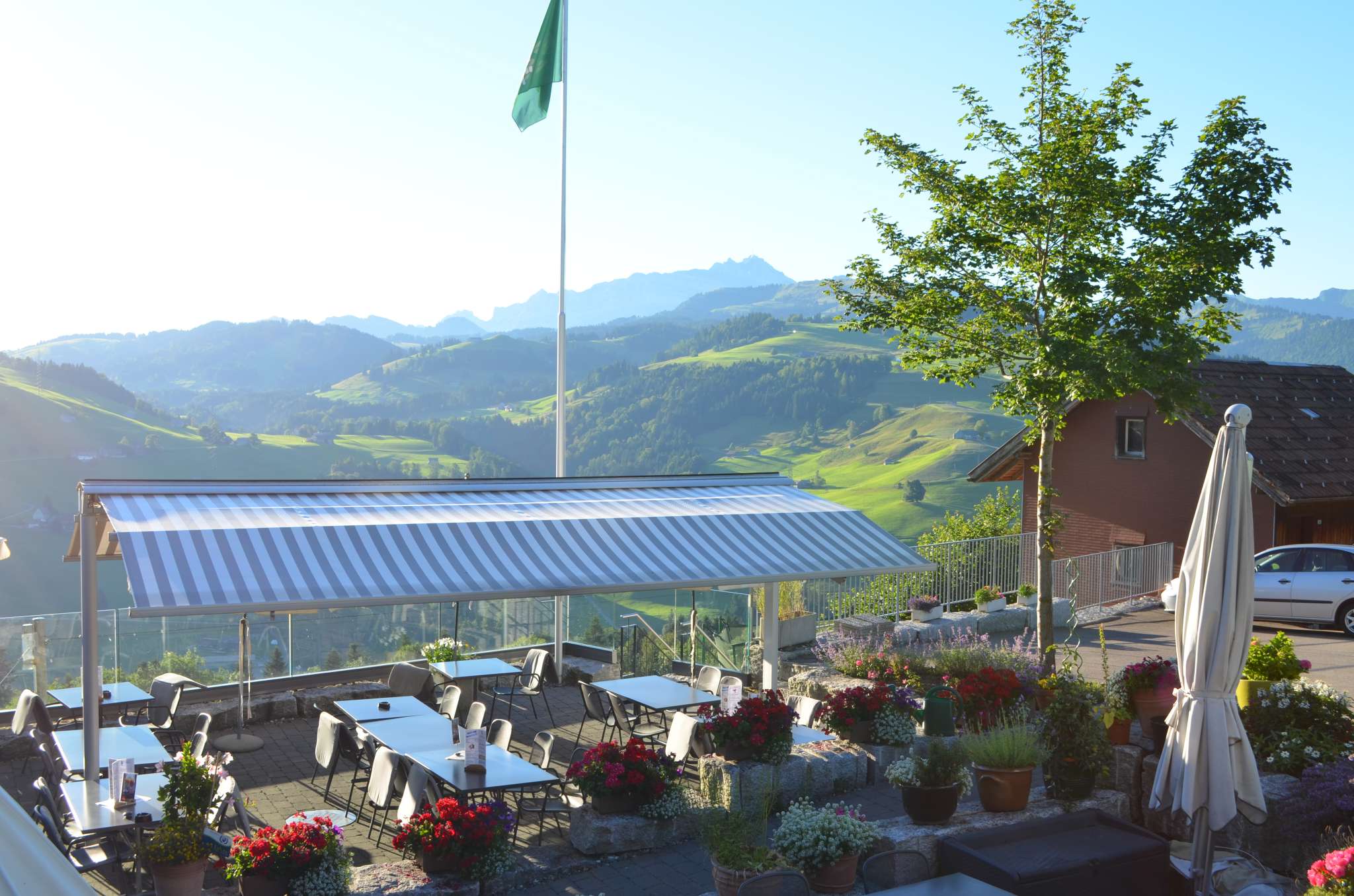 Unser 2-Generationen-Familienbetrieb besteht seit 30 Jahren und wurde in all den Jahren ständig ausgebaut. Die Aussicht von unserem Restaurant mit Terasse auf den Alpstein ist atemberaubend. Die grosse Auswahl an Broten, Backwaren und Schokolade-Spezialitäten werden liebevoll in eigener Produktion hergestellt. Besonders bekannt sind wir für unsere hausgemachte Glace und Toggenburger -Spezialitäten. Jeden Sonntag verwöhnen wir unsere Gäste mit unserem "Bäcker-Z'morge"-Buffet.