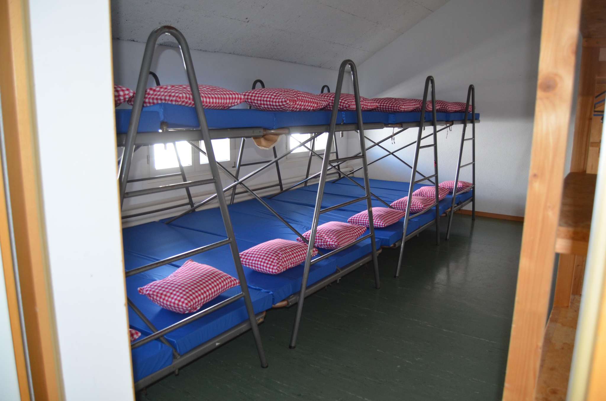 Die Mehrzweckanlage verfügt über ein Massenlager mit 100 Betten (3x12, 2x16, 1x24, 1x8), Duschraum (EG), WC und Waschraum (OG). Im Weiteren verfügt sie über eine gut eingerichtete Militärküche, Sportanlagen sowie einen Esssaal.