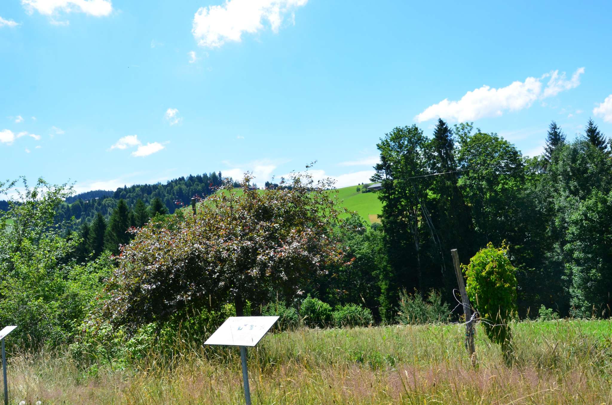 Ein Obstgarten auf fast 1000 m.ü.M. Rund 200 Obst-, Wildobst- und Beerensorten, historischer Obstpfad mit Sorten aus 2000 Jahren, Kuriositäten, Wildbienen, Hecke, Teich und Trockensteinmauern. Es werden Führungen für Gruppen angeboten, auf Wunsch mit Degustation von Produkten aus Wildobst.