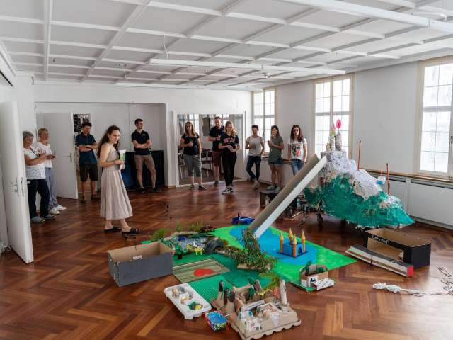 Hier treffen die Kulturschaffenden und die Bevölkerung in einer inspirierenden Umgebung aufeinander. Sie tauschen sich aus, initiieren neue Projekte und entwickeln bestehende weiter. Im Rathaus für Kultur finden sich Ateliers und Proberäume, die Dogo Residenz für Neue Kunst und die Rathaus Stube, ein kleiner, aber feiner gastronomischer Betrieb. Das Haus ist öffentlich zugänglich. Alle Besuchenden sind eingeladen zu verweilen und die regelmässig stattfindenden Veranstaltungen zu geniessen oder Raum für ein eigenes Projekt zu mieten. Durch die vielfältige Nutzung wird das Rathaus und seine Umgebung belebt.