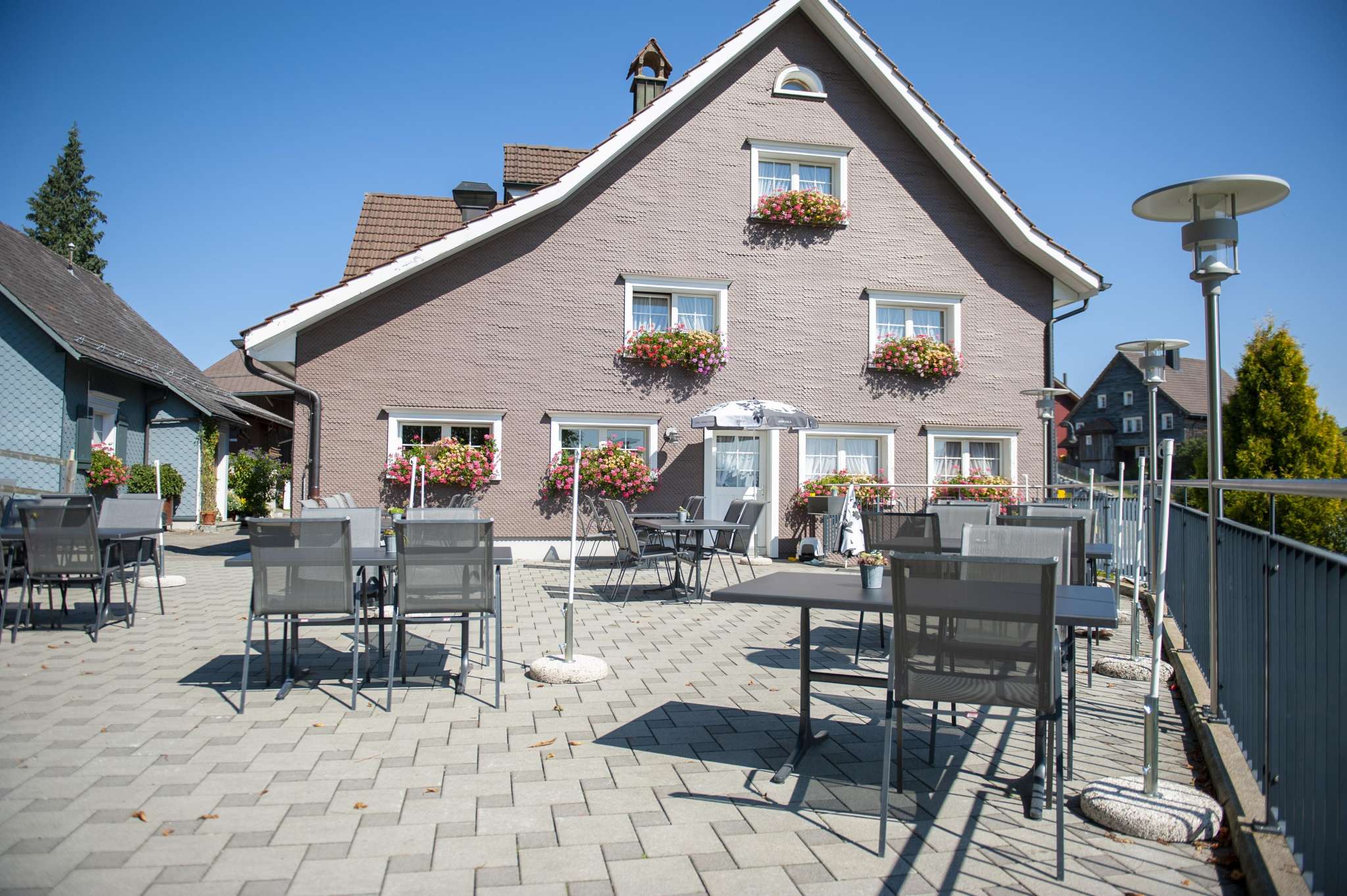 Das Ausflugsrestaurant Frohe Aussicht befindet sich in Lütisburg und macht seinem Namen alle Ehre. Grosszügige Gartenterrasse mit 80 Plätzen unter dem Kastanienbaum. Schöner Kinderspielplatz in Sichtweite der Eltern.