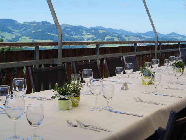 In der gemütlichen Weid-Stube ist (fast) alles möglich. Sie umfasst in der Bestuhlung 60 Sitzplätze, max. 78 Plätze. Für die Musik oder Darbietungen steht eine kleine Bühne (2 x 6m) zur Verfügung.