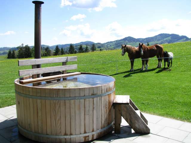 Auch Wellness kommt auf dem Weid-Hof nicht zu kurz. Zum Beispiel kann im Holzzuber gebadet werden.