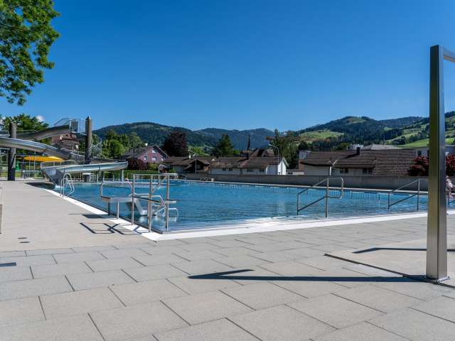 Im Schwimmabd Ebnat Kappel finden alle Besucher ein passendes Plätzchen zum Verweilen. Die weitläufige Liegewiese mit den schattenspendenden Bäumen bietet viel Platz für gross und klein.