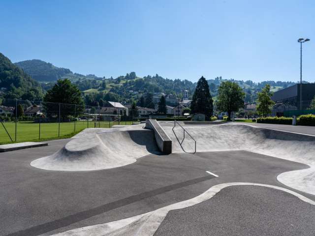 Kleiner aber feiner Beton-Skatepark. Neben dem Elbowshaped Bowl, dem Round Bowl und einem kleinen Snakerun mit Wellenbahn gibts auch eine kleine Street Area.
