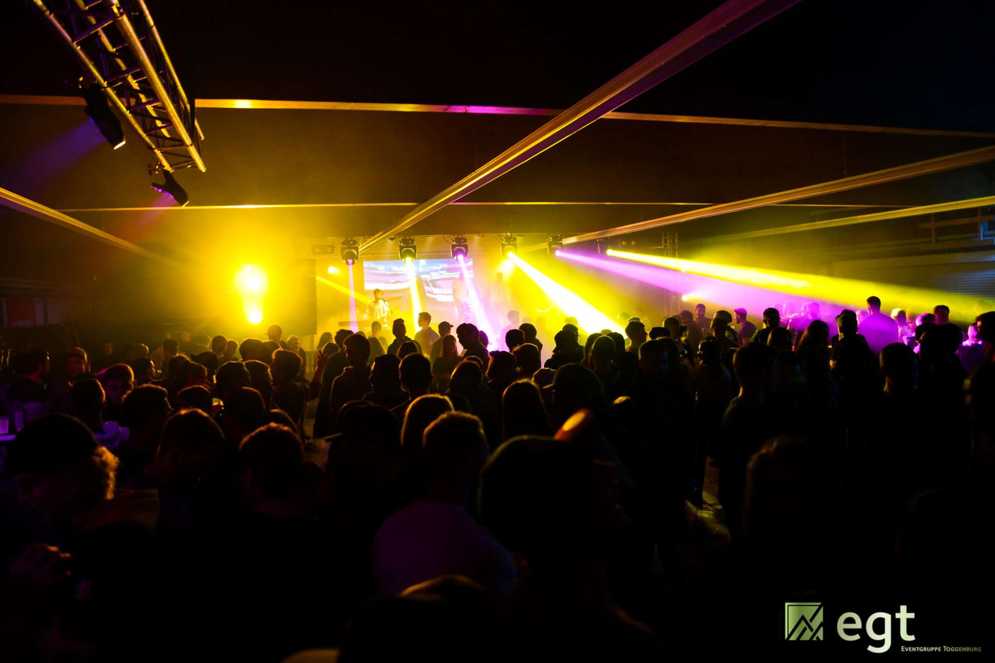 Eine Bühne und die dazugehörige Infrastruktur sind vorhanden.