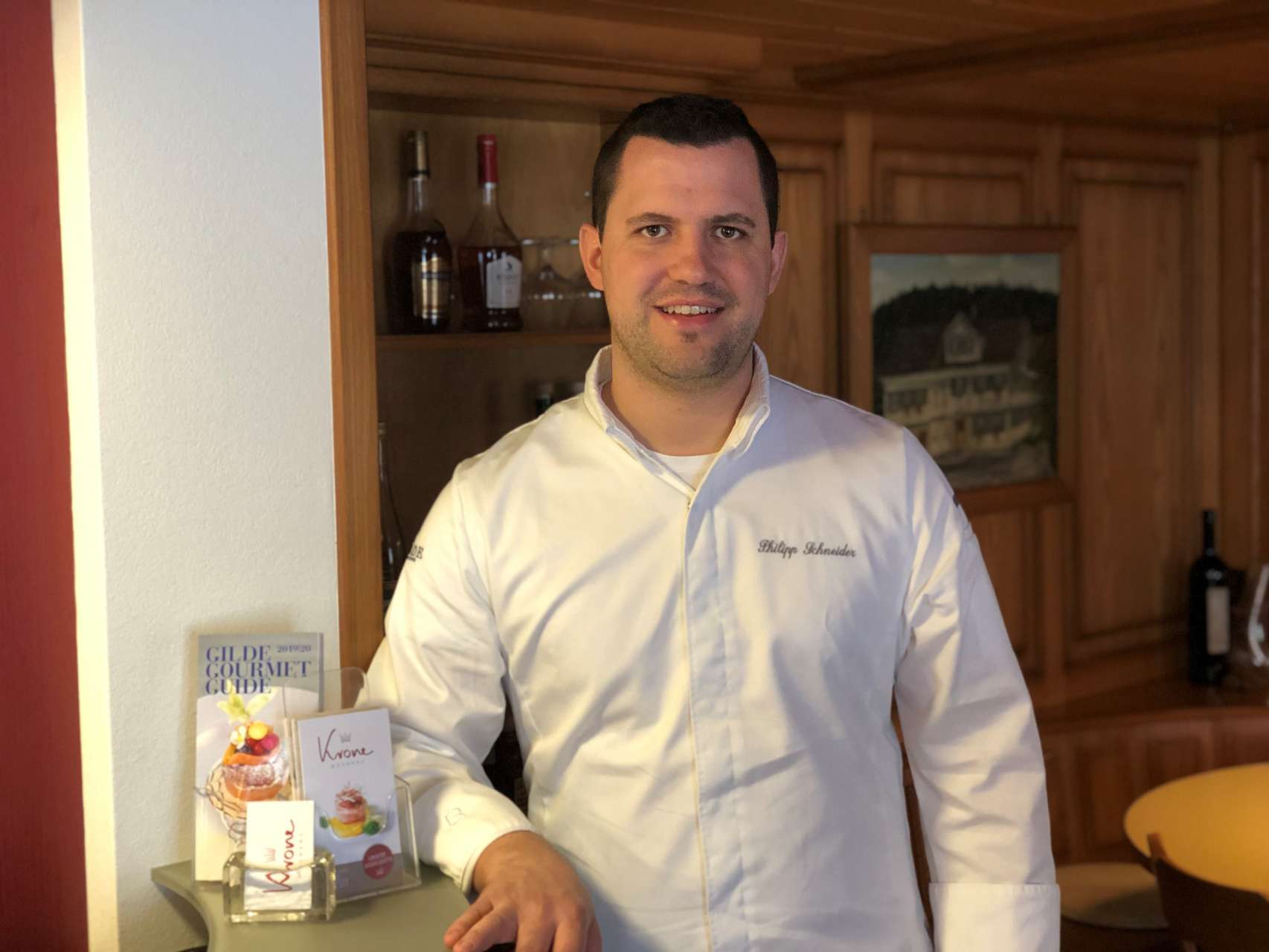 Er wolle nirgendwo anders sein, nicht privat, nicht beruflich, sagt Philipp Schneider. Seit 2017 ist er Gastgeber in der «Krone» Mosnang und führt mit seiner Frau Astrid eine Familientradition weiter, die 1891 mit seinem Ururgrossvater begonnen hat. Schon als kleiner Bub wusste der heute 33-Jährige, dass er einmal in die Fussstapfen seines Vaters treten werde. «Koch war und ist mein Traumberuf und Mosnang meine Heimat.»